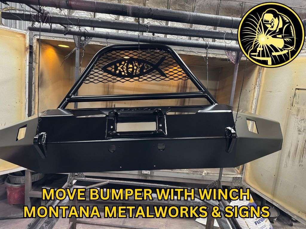 At Montana Metalworks & Signs, we can Customize your Classic Series MOVE bumper kit to include wing light hole cutouts, center light bar cutouts, or winch mounting plates.